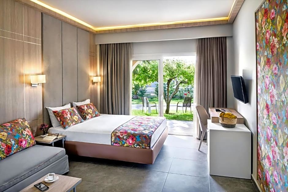 Double or Twin Garden View is 269 square feet and includes a king-size bed 150-183 width plus a sofa bed plus extra beds on demand and has a Disability-friendly bathroom.